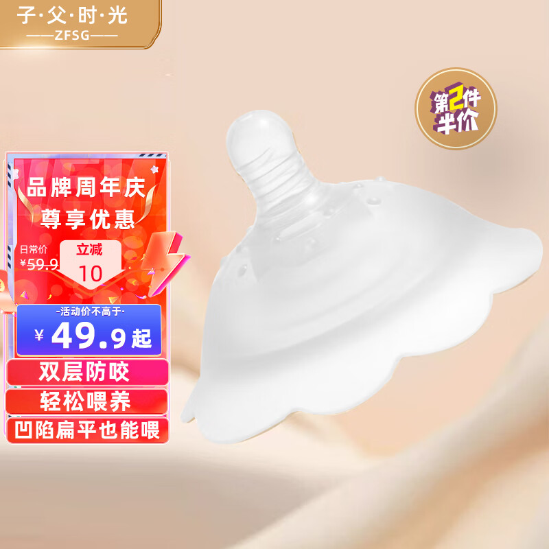 ¥48.9 ZFSG乳盾新生儿哺乳期防咬混淆奶盾超薄乳头保护罩双层乳贴喂奶矫正器 双层透明乳盾1只装【无收纳盒】 59.9