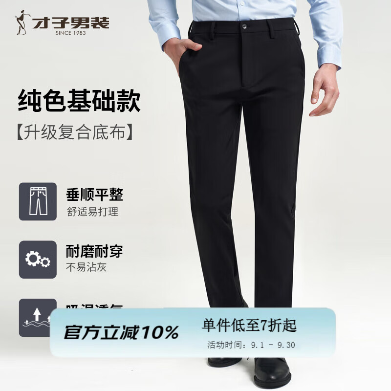 ¥169 才子休闲裤男25年春秋新款纯色基础款直筒裤弹力垂顺易打理西装裤 黑色 33 84cm 199