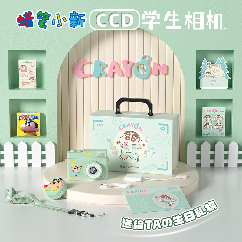¥179 蜡笔小新(CRAYON SHINCHAN)生日七夕情人节礼物ccd数码相机礼盒送女生闺蜜中学生校园旅游vlog便携实用礼品送女朋友女孩儿童 【手提箱礼盒】绿色相机+32G卡+读卡器 199