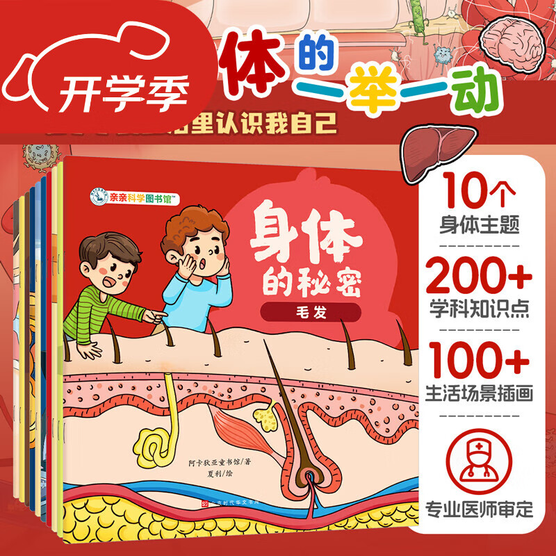 ¥49.8 【新书】亲亲科学图书馆:身体的秘密(全10册) 3-6-8岁儿童日常生活化科普百科全书绘本皮肤呼吸毛发骨骼幼儿阅读启蒙亲子早教漫画 身体的秘密(全10册) 69.8