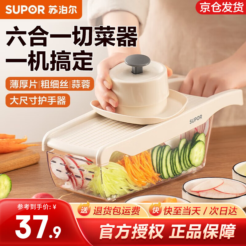 ¥48.8 苏泊尔(SUPOR)切菜器多功能切丝器刨丝器擦丝器土豆丝刷丝器切丝机刮片磨蓉削丝 六种刀片合一 花样刀工 48.9