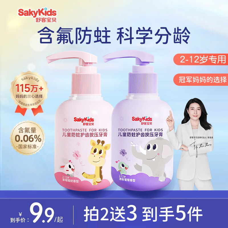 ¥39.9 舒客宝贝儿童漱口水6-8-12岁防蛀清新口气宝宝专用无酒精 按压式大容量牙膏150g*2 59.9