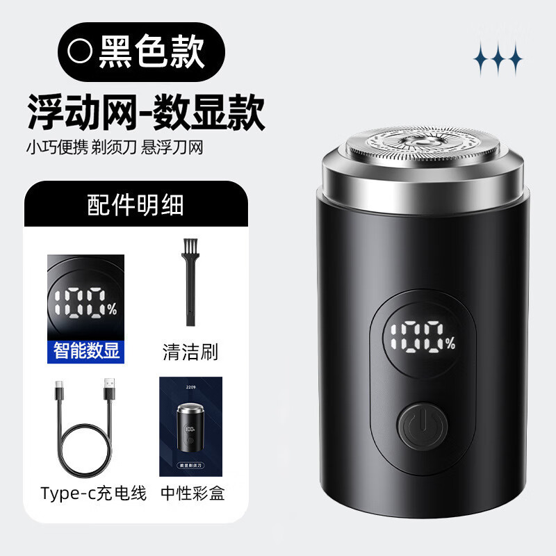 ¥47.9 【精选好物】新款迷你小钢炮电动剃须刀铝合金胡须刀水洗男士刮胡 2209黑色-悬浮刀头(1个装) 77.9