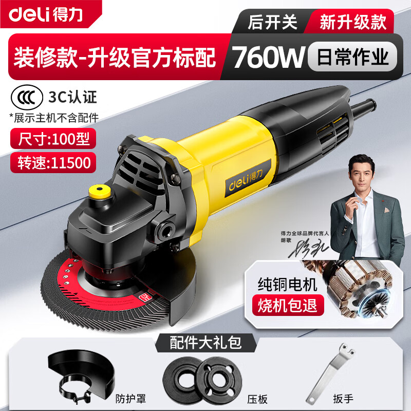 ¥85 得力角磨机手持木工磨光机家用大功率小切割钢材打磨木头手磨电动正品 【760w后开】官方标配 94