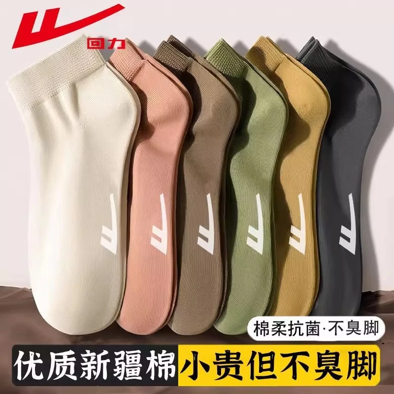 ¥25.8 回力袜子男士夏季薄款短袜纯色新疆棉吸汗透气7A抗菌防臭船袜 【5双浅色系】7A级抗菌防臭 30.8