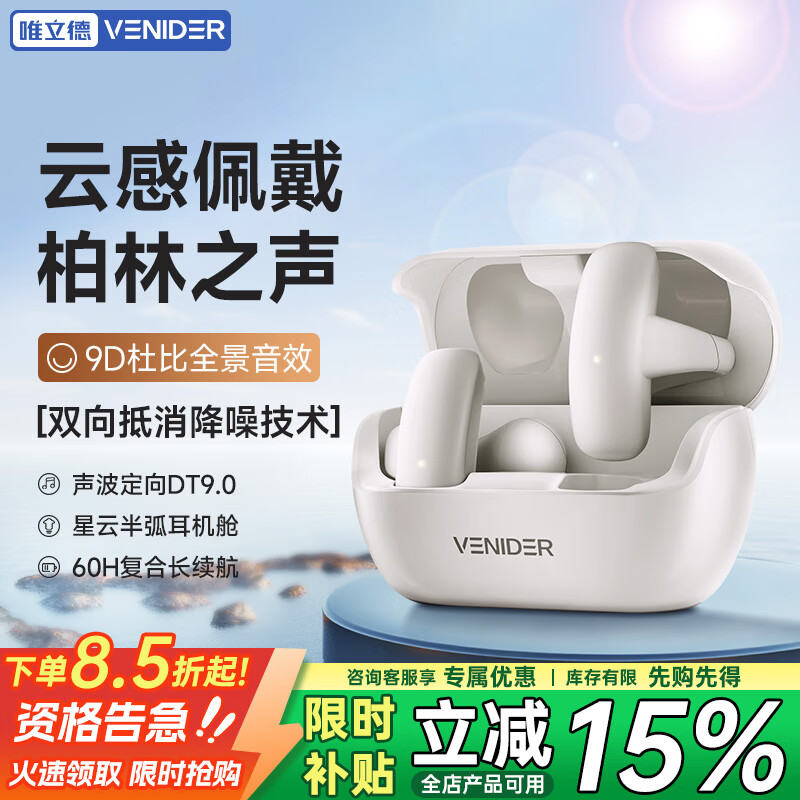 ¥39.9 唯立德【顶配新款】骨传导概念蓝牙耳机耳夹式开放式无线不入耳运动防水防汗通话降噪 优雅白丨沉浸式不漏音丨臻享版 99.9