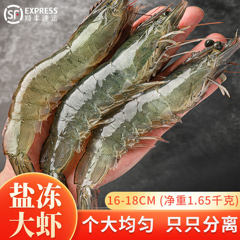 ¥150 流连湾 超大新鲜大虾鲜活超大基围虾青岛特大青虾白虾冷冻虾类海鲜水产 大号16-18cm(1.65Kg60-80只) 170