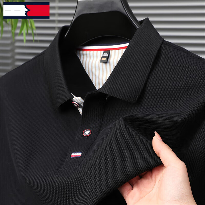 ¥291 汤米希凯利美国高端品牌翻领polo衫男士短袖t恤纯棉夏装25新款商务休闲男装 专柜正品黑色 2XL 54 150-165斤 298