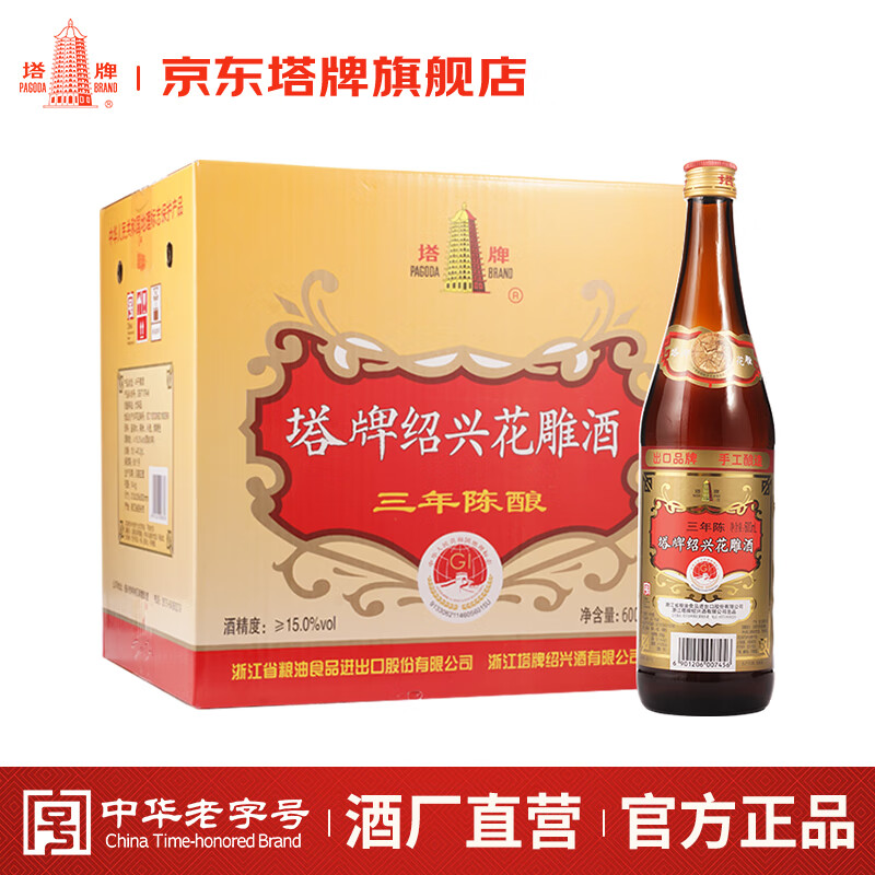 ¥114 塔牌 三年陈花雕酒 绍兴黄酒 半干型糯米花雕酒 整箱装 600mL 12瓶 119