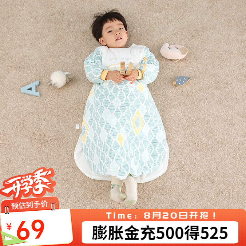 ¥59 良良【反季清仓】秋季婴幼儿睡袋防踢被宝宝防惊跳抱被盖被 梦境绿 80码【适合80-95cm】纯棉 柔软舒适 99