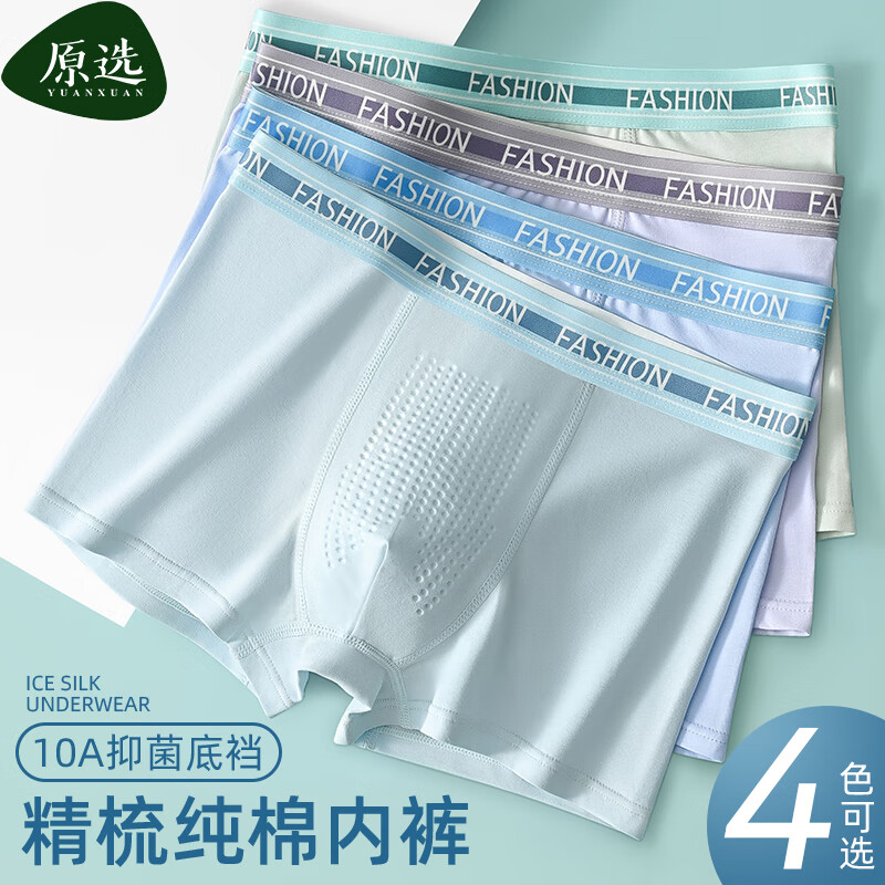¥49.8 原选内裤男士纯棉高端奢侈按摩颗粒10A抗菌裆四角男内裤青少年发育期 青少年按摩颗粒内裤混装 (4条装) 3XL (140-170)斤 69.8