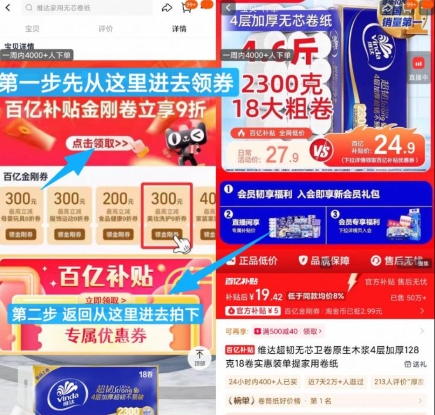 百亿补贴29.9元,价格下拉详情领百亿补贴金刚券-再返回详情页-百亿补贴点进去拍,实付19.2元包邮,维达超韧无芯卫卷128克18卷