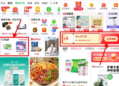 跳转京东αpp-首页-9.9包邮-拿4-4元券