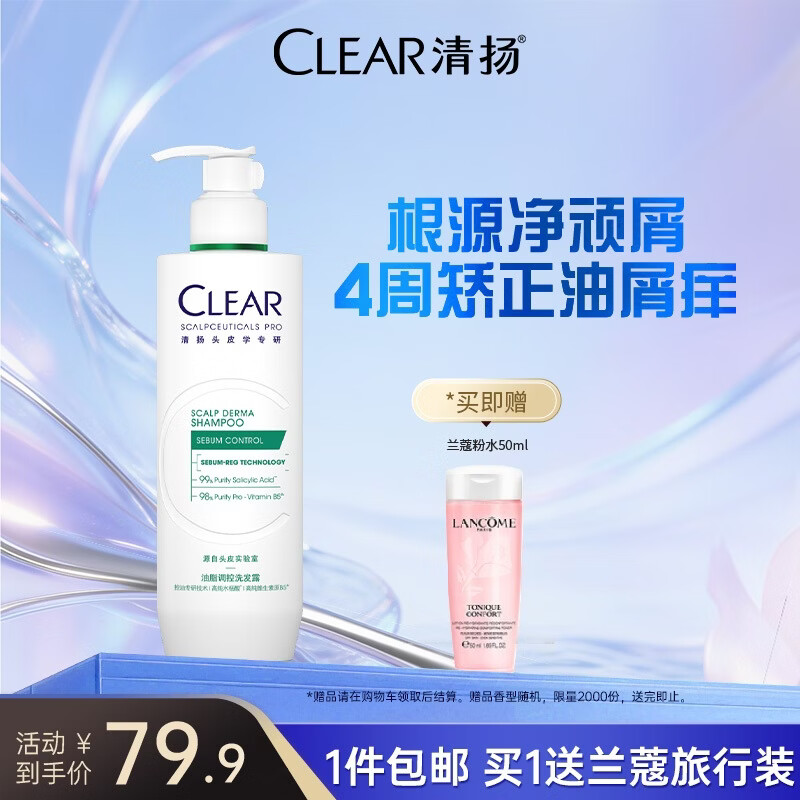 清扬头皮学专研洗发水任选1款仅79.9元,赠兰蔻爽肤水50ml!