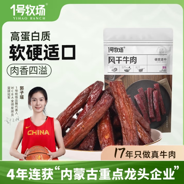 61.7元包邮!1号牧场 牛肉干300g*2件