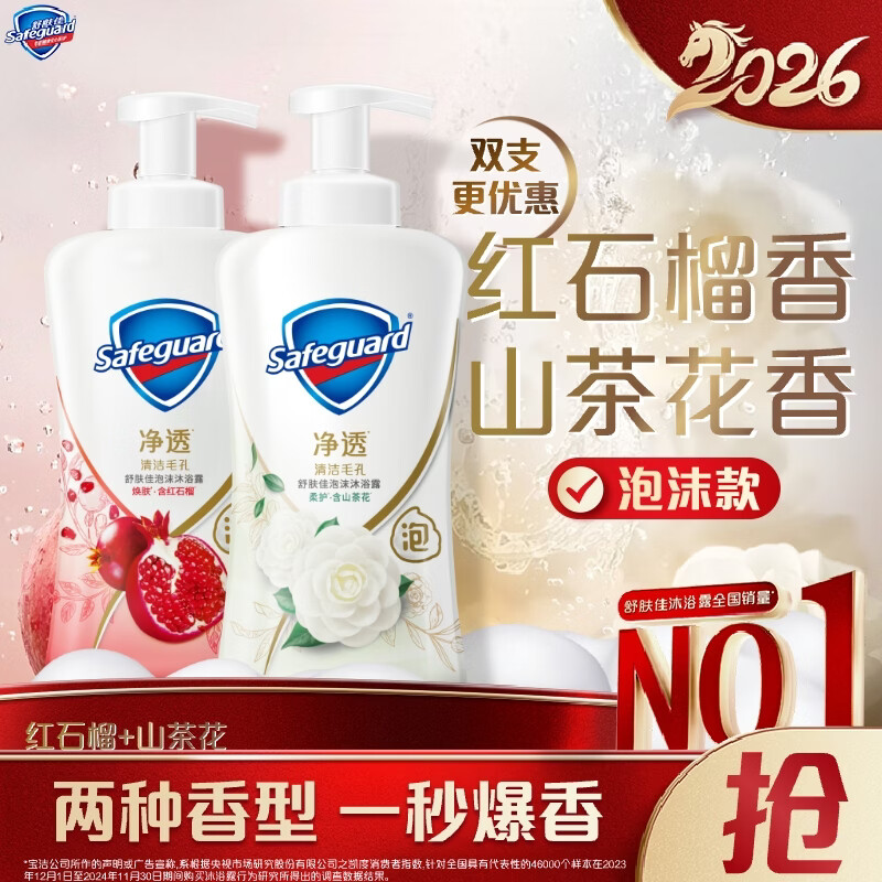 【限时抢购】舒肤佳泡沫沐浴露400g*2瓶仅58.71元!赠200g同款,持久留香男女通用