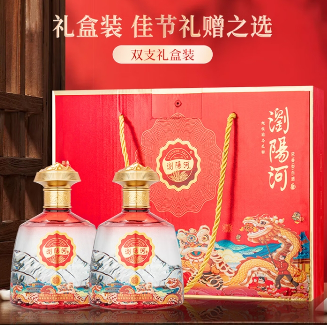 37元包邮!浏阳河 四海欢愉礼盒装得52度 500ml*2瓶