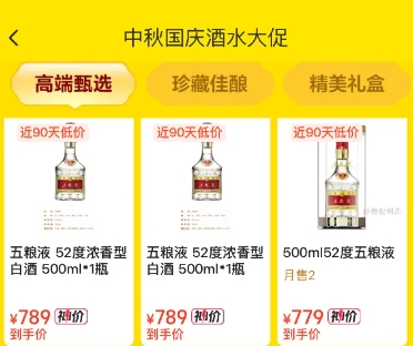看了下五粮液779元、剑南春369元