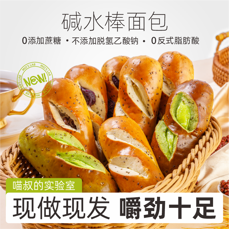 ¥19.9 喵叔的实验室奇亚籽碱水面包棒健身饱腹早餐 54.9