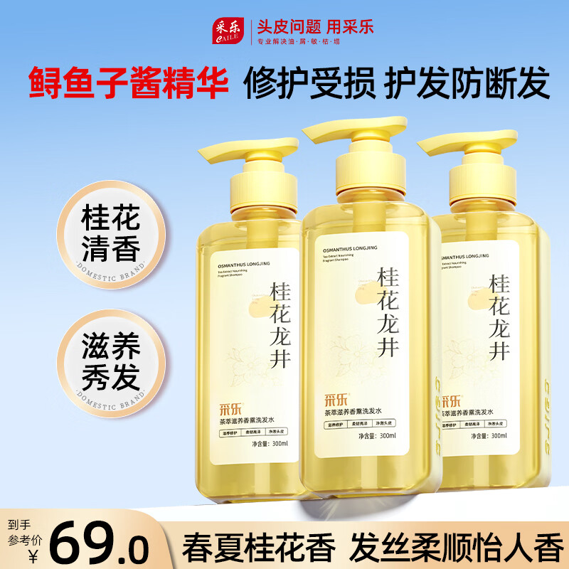 采乐无硅油洗发水:300ml*3瓶仅需39元