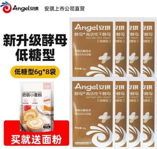 安琪新一代低糖型酵母6g*8袋仅8.9元!赠450g小麦面粉