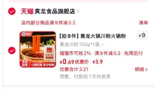 6.5元包邮!黄龙火锅宽川粉100g*9件