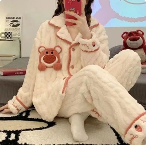 29.9元包邮!草莓熊法兰绒睡衣套装