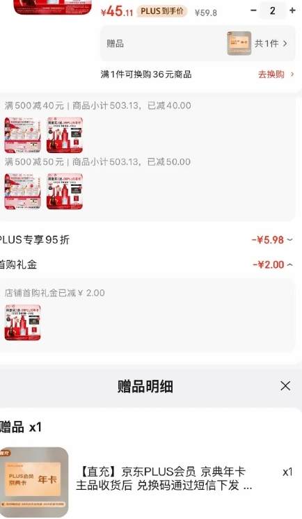 在售价59.8元,拍2件,叠凑单一起,折主商品90.22元+赠PLUS会员 京典年卡