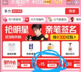 1、淘宝-天猫超市-首页-如图领取149-15的鸿宝!