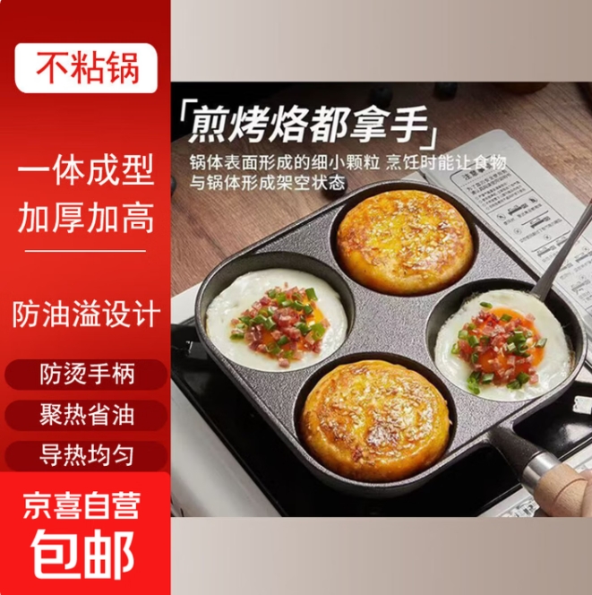 8.9元包邮,章丘四孔铸铁煎蛋锅 17cm