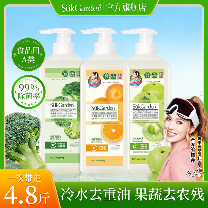 蔬果园A类食品用洗洁精800g*3瓶 到手26.9元包邮