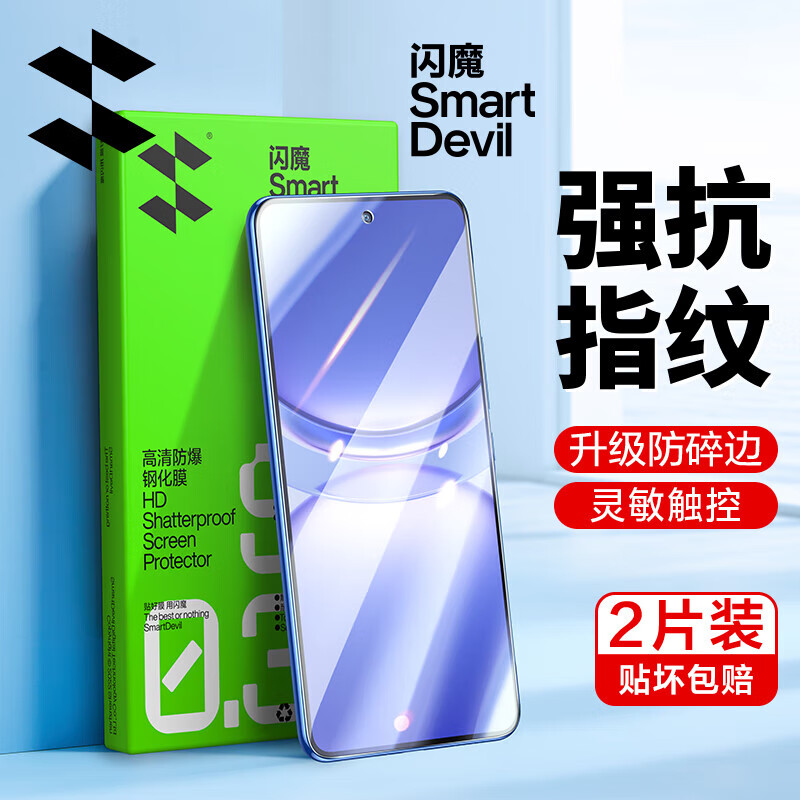 ¥32.9 闪魔【优选好物】-适用华为nova12/活力版钢化膜高清全屏玻璃防摔抗指 nova12/活力版【标准版丨抗指纹】2片+神器 贴坏包赔 62.9
