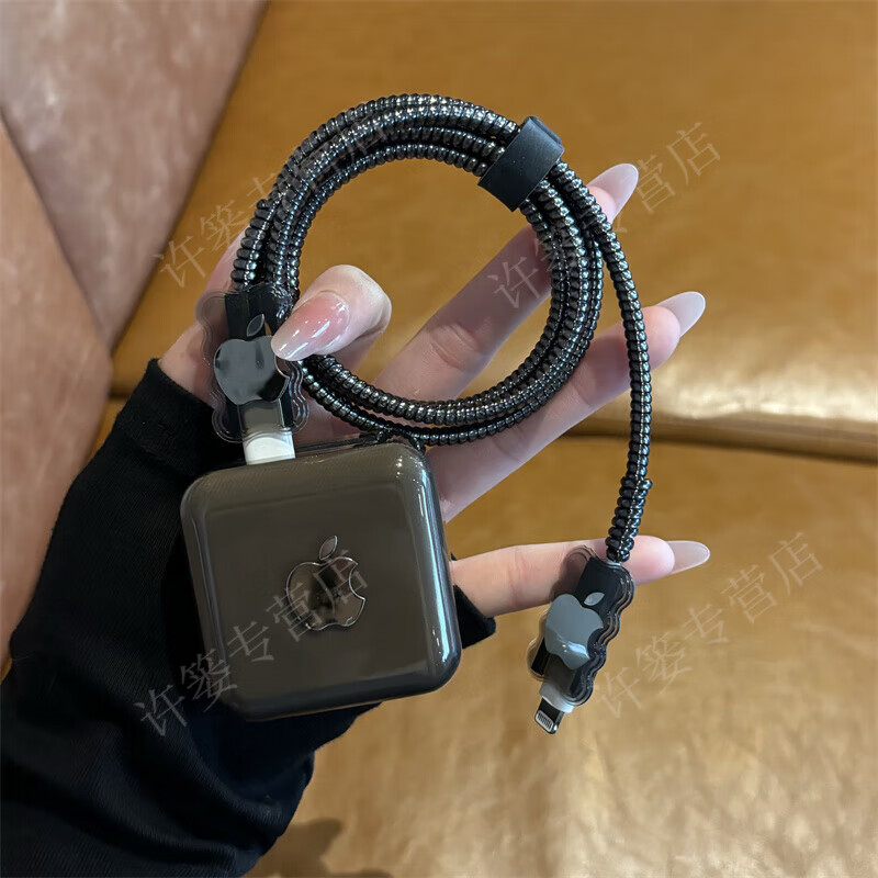 ¥25.44 MPPMCK充电器保护套防断头简约苹果35w双口充电器保护套适用iPhone16pro快充线15软壳 35w双孔常规透黑壳【简约标志】电镀黑4件套 28.44