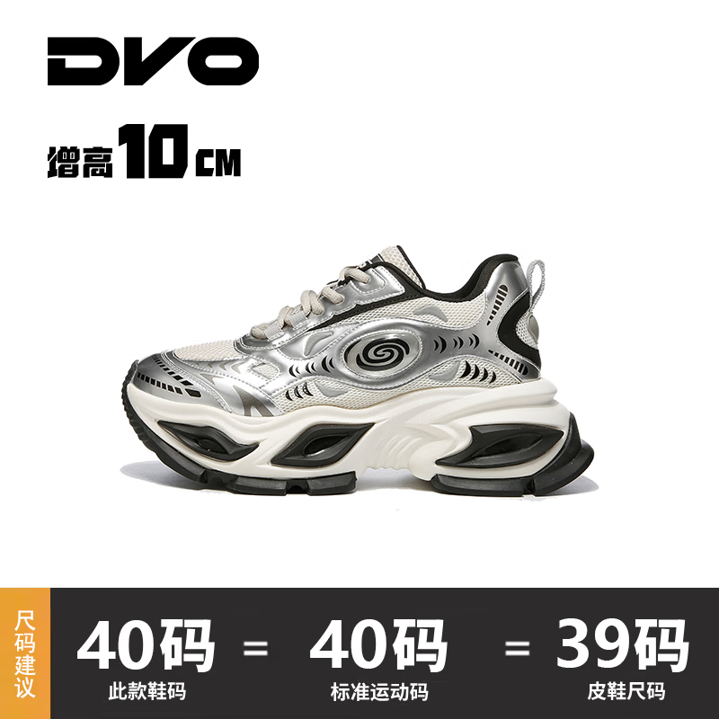 ¥499 DVO10CM隐形增高鞋男款潮流秋冬爆款银色网面厚底减震老爹鞋运动潮鞋 银色 40 男码 509