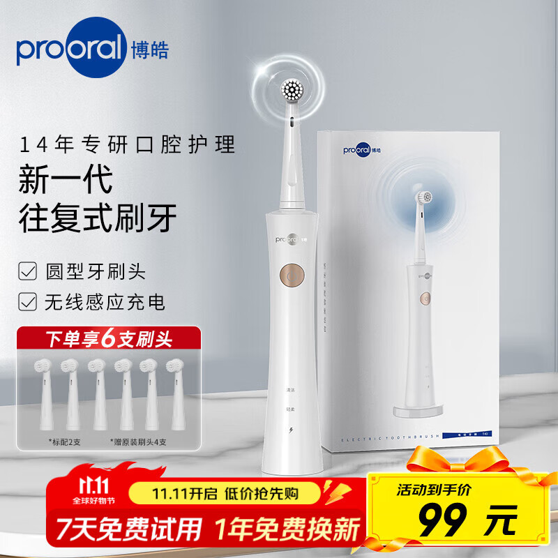 ¥89 博皓(prooral)电动牙刷 感应智能圆头牙刷充电式深度清洗洁牙齿 2档洁牙模式 送父母朋友礼物 T40 象牙白-T40 99