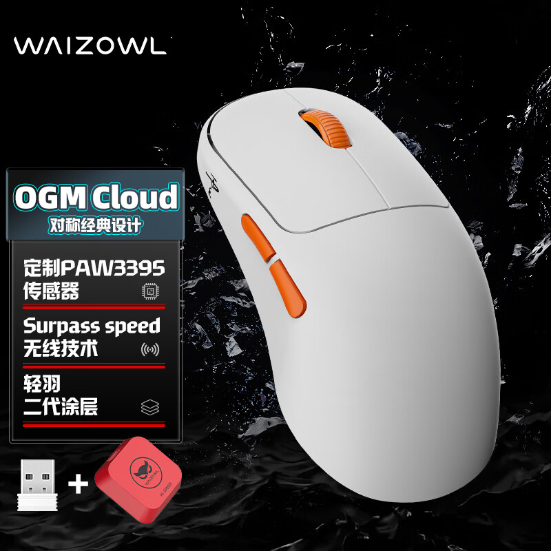 ¥499 WAIZOWL 唯卓OGM Cloud云 无线鼠标 3395游戏鼠标 轻量化三模蓝牙 电竞鼠标 办公游戏 无畏契约csgo Cloud雲-凌霄橙+4K接收器 539