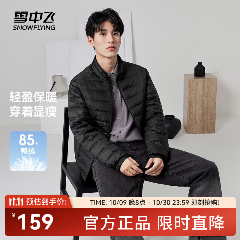 ¥159 雪中飞男女立领秋羽绒百搭轻薄鸭绒立领修身轻盈隐藏式口袋 宝石黑|8086-男 L 175/96A 174