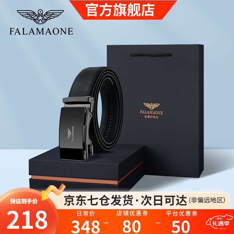 ¥298 法莱阿玛尼(FALAMAONE)皮带男真皮自动扣腰带头层牛皮高档品牌生日礼物送父亲男友老公 百搭枪色/PD6688Q【专柜礼盒】 110cm -140cm均码加长(可修剪) 348