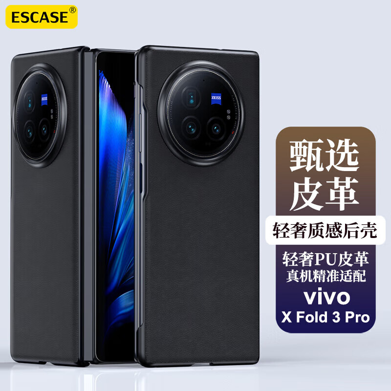 ¥26.42 ESCASE适用vivoxfold3手机壳vivo x fold3pro保护套防摔PU皮商务皮套简约翻盖折叠下盖典雅黑 Xfold3Pro-原机黑色高端素皮 28.42