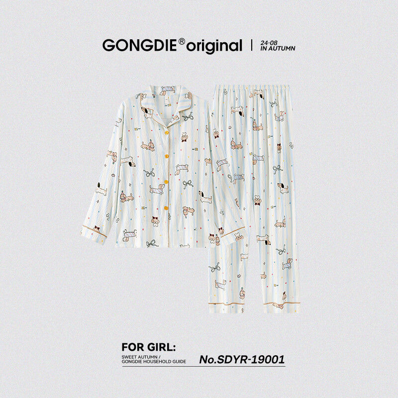 ¥54 宫蝶25年秋季新品春秋季睡衣女长袖可外穿家居服可爱小狗套装带胸垫 满印小狗套装(不可拆卸胸垫) L (建议100-120斤) 88