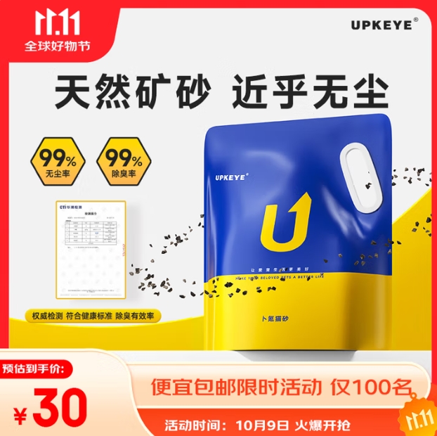 【自营】UPKEYE猫砂矿砂 4kg,低至1元/斤