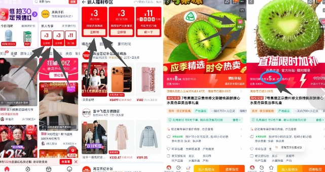 1、淘宝首页-淘宝直播-进去-右上角新人专区进去拿取红包