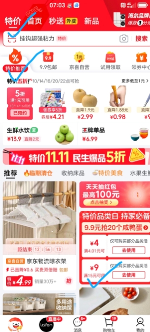 1、京东-特价-特价推荐 -领4券下面的那个15-9券