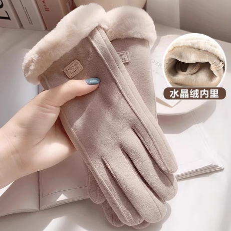 6元包邮!冬天加绒加厚麂皮绒保暖手套
