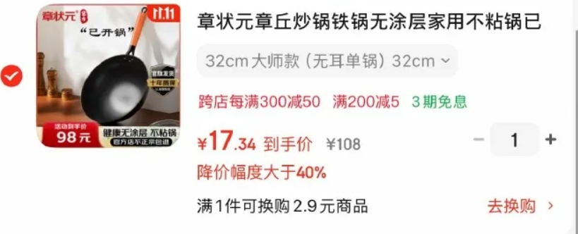 在售价108元,领10元券,叠凑单2款,plus折铁锅17.34元到手;