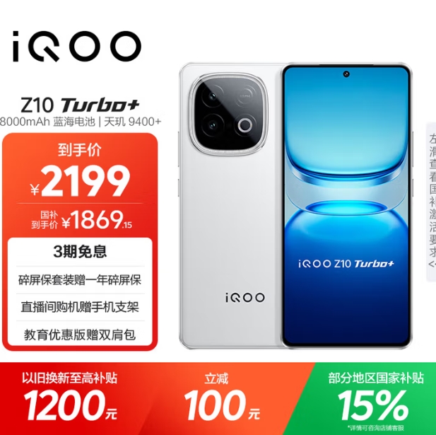 1597元包邮!iQOO Z10 Turbo+ 5G手机 12GB+256GB 云海白