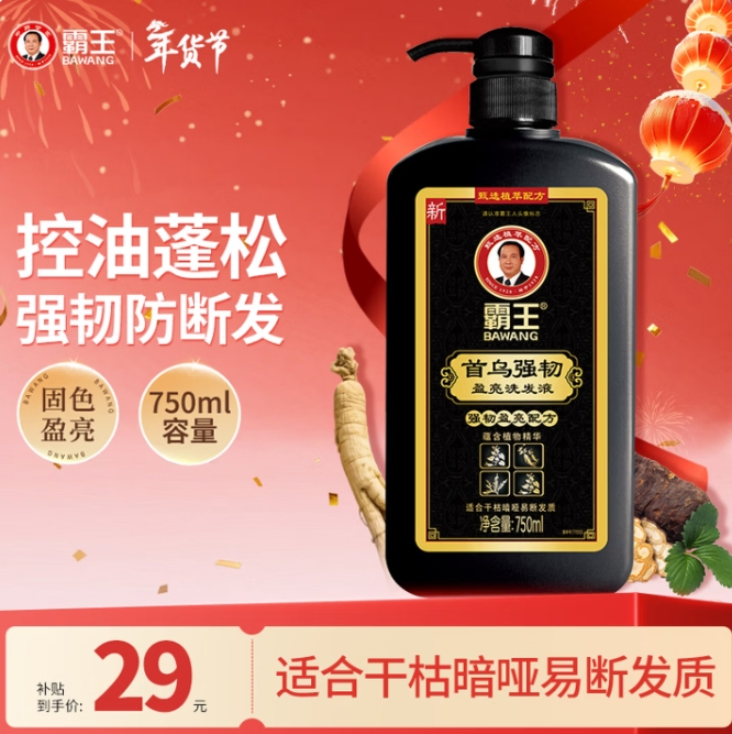 16.7元包邮!霸王.首乌洗发水750ml