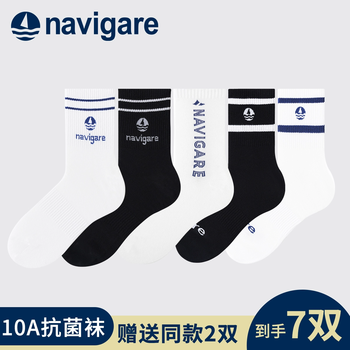 ¥19.4 Navigare意大利小帆船10A抗菌中筒棉袜5双 42.4