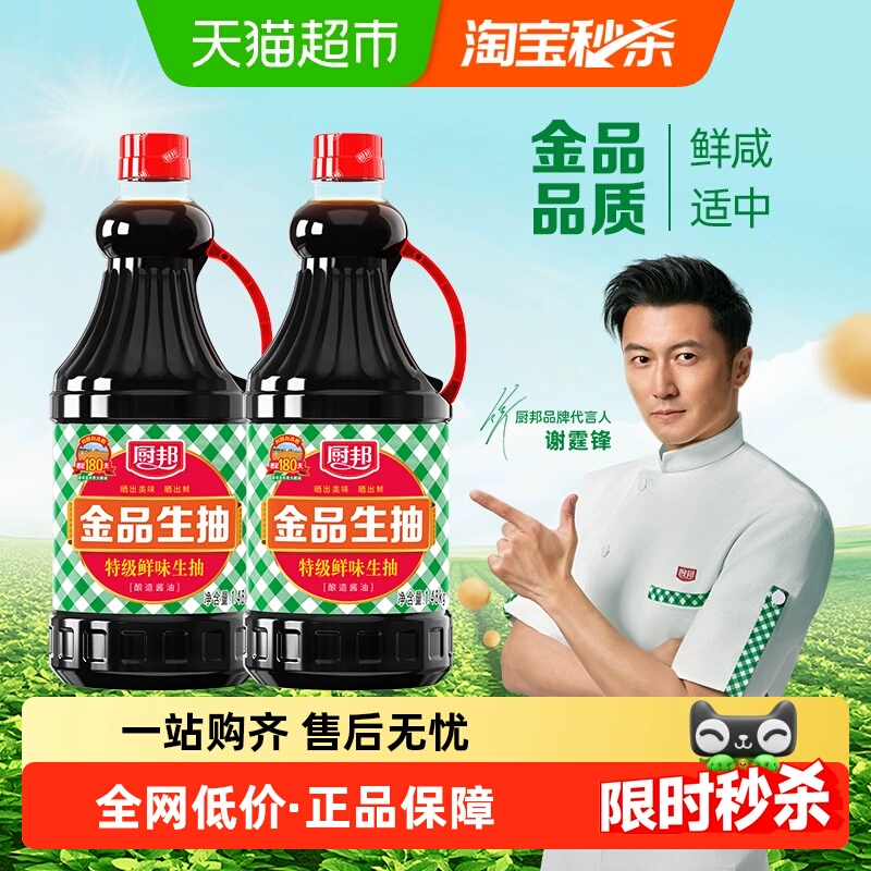 ¥44.9 厨邦金品生抽1.48kg*2特级酿造酱油 49.9