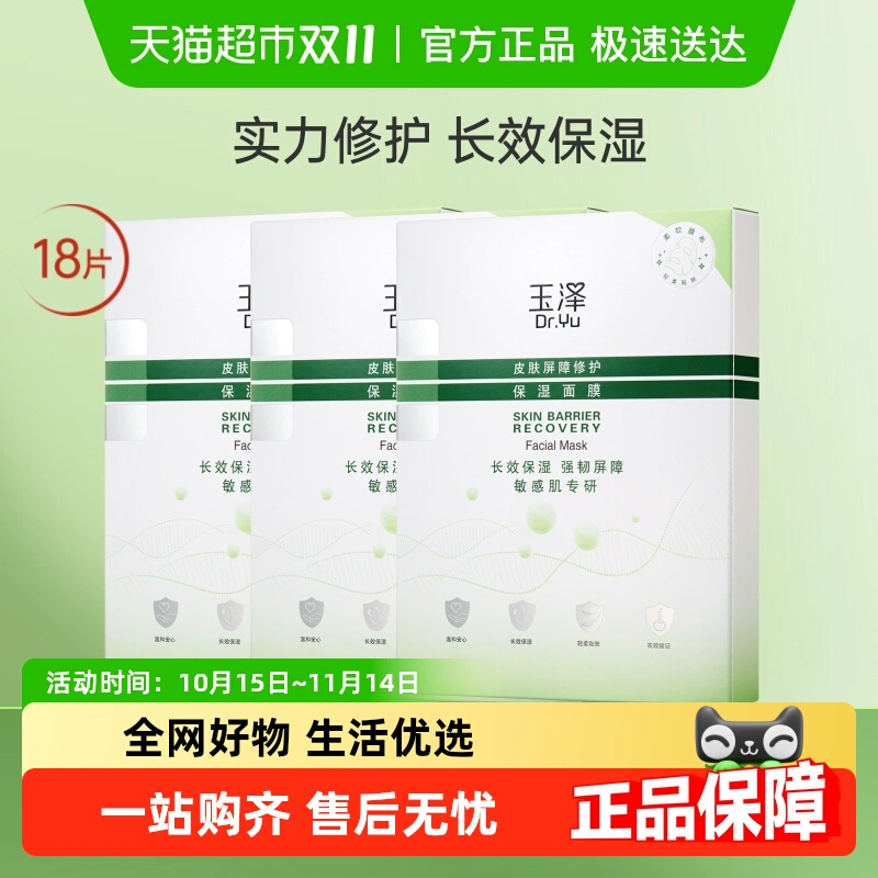 ¥56.81 下拉享优惠!玉泽皮肤屏障修护保湿面膜18片 91.81